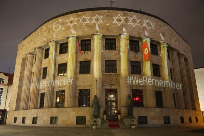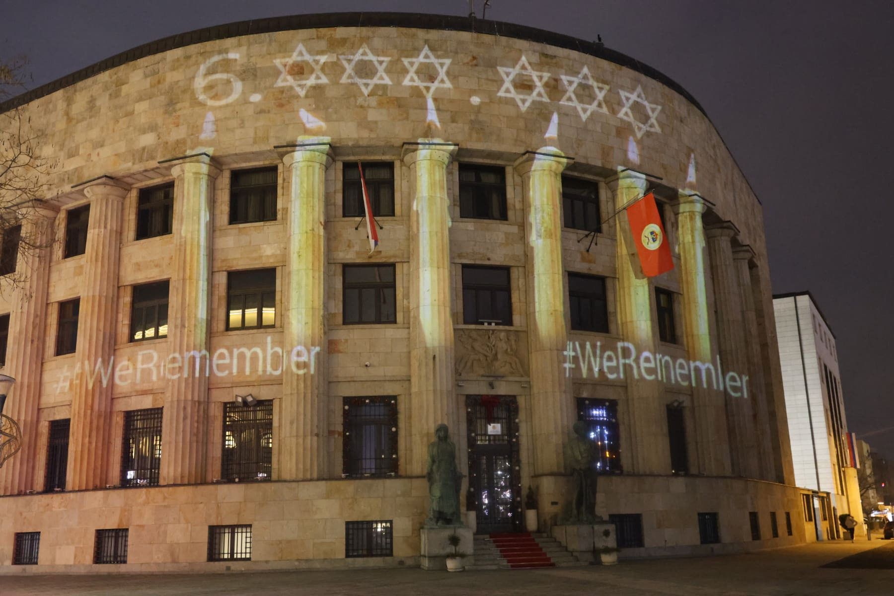 Povodom Međunarodnog dana sjećanja na žrtve Holokausta, večeras je na Palati Republike u Banjaluci prikazan broj koji simbolizuje 6.000.000 Jevreja koji su stradali u Holokaustu.