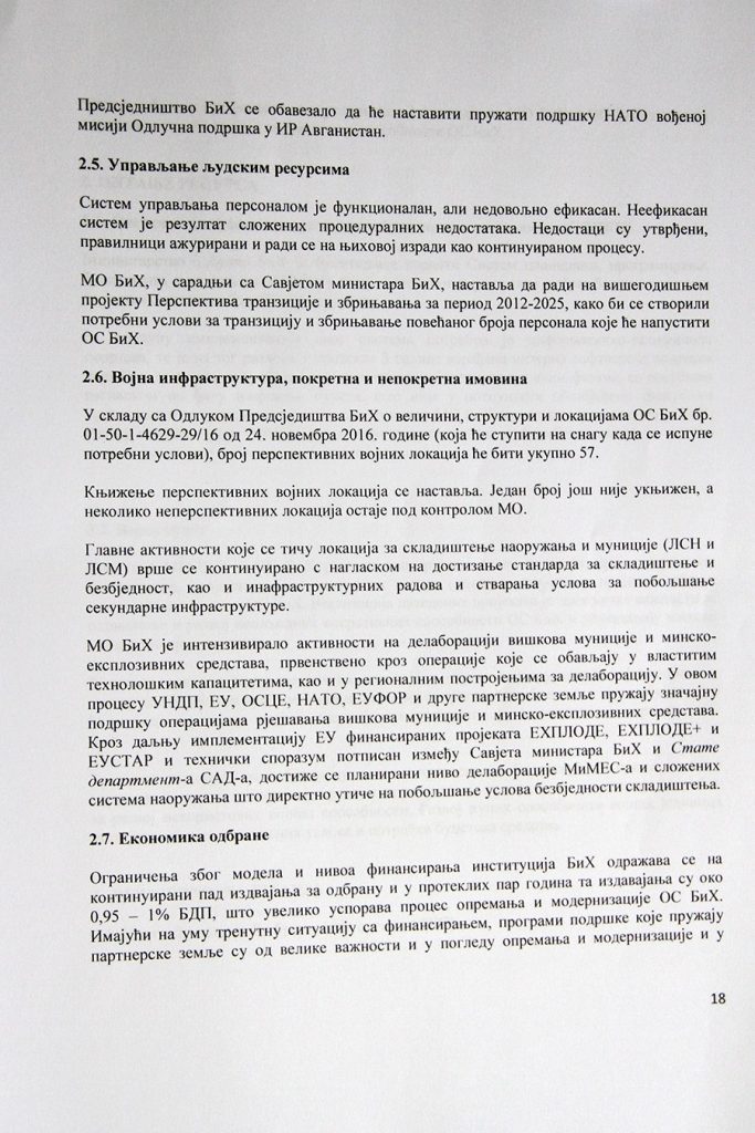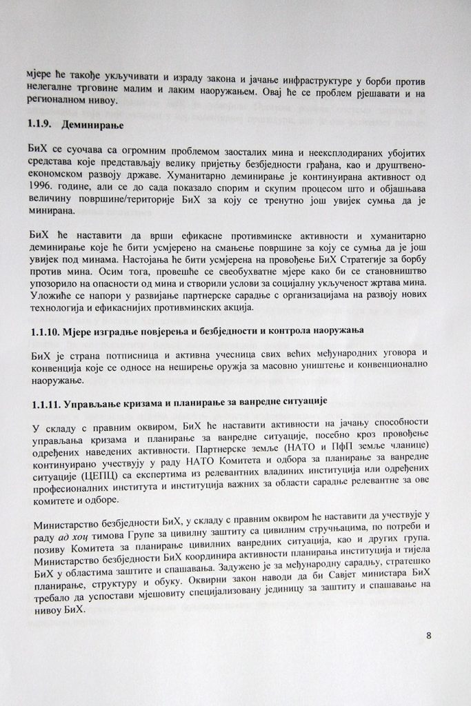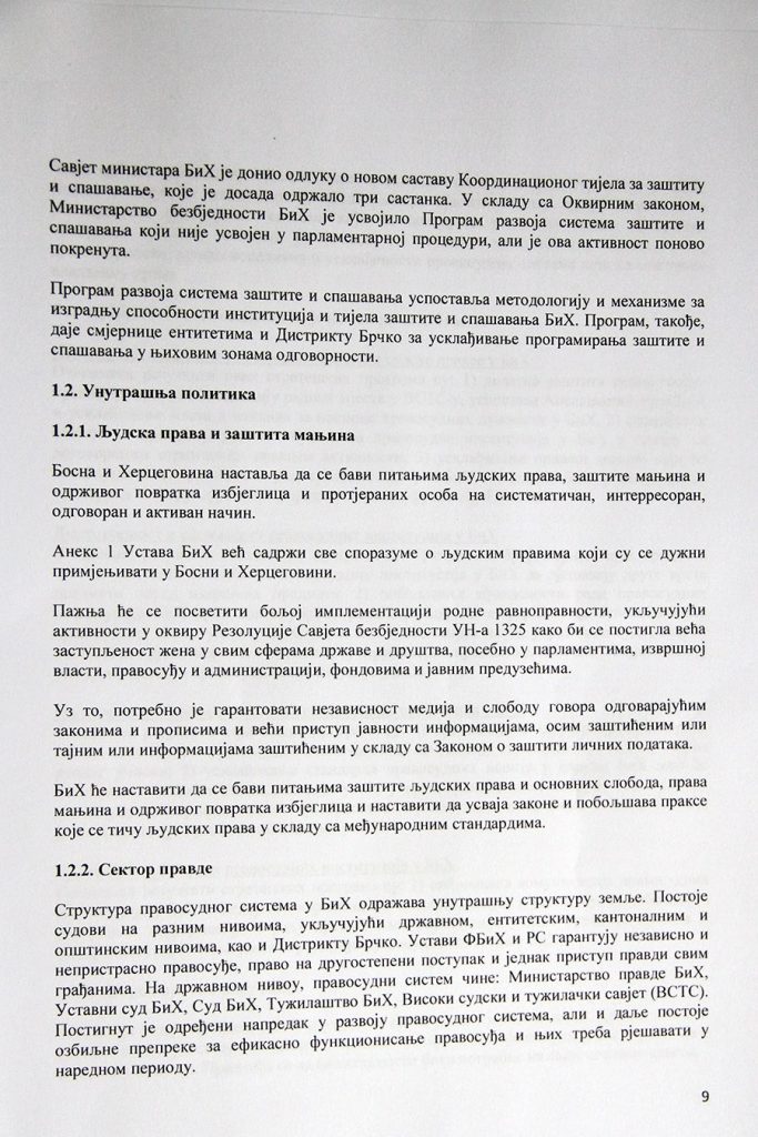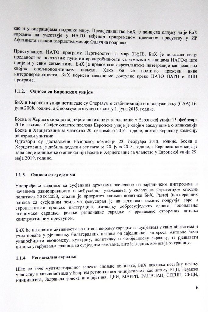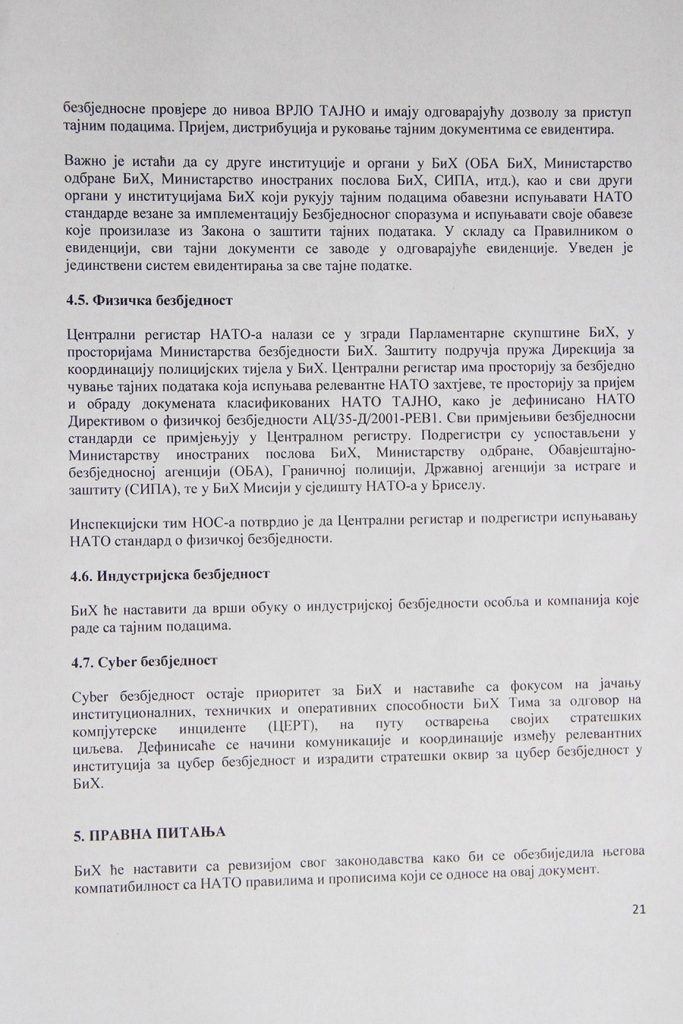– Odnosi sa NATO se kontinuirano razvijaju kroz razne programe i mehanizme saradnje u kojima učestvuje BiH. Uključivanje BiH u savremene ekonomske, evropske, političke, i procese bezbjednosne saradnje, potvrđuju njenu predanost principima demokratije, zaštite ljudskih prava, tržišne ekonomije i vladavine prava. BiH podnosi NATO-u ovaj dokument „Program reformi Bosne i Hercegovine“. BiH je predana poboljšanju odnosa sa NATO, bez prejudiciranja konačne odluke o članstvu. Sve aktivnosti su u skladu sa prijašnjim odlukama Predsjedništva, Savjeta ministara i Parlamentarne skupštine BiH, u skladu sa ustavnim nadležnostima Predsjedništva BiH – piše u Programu reformi.