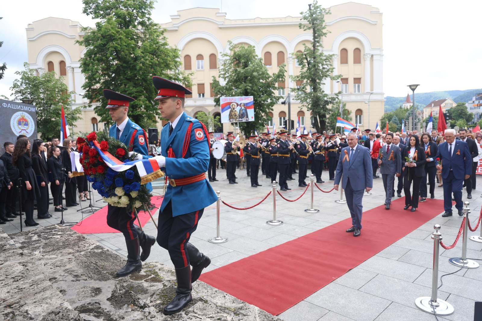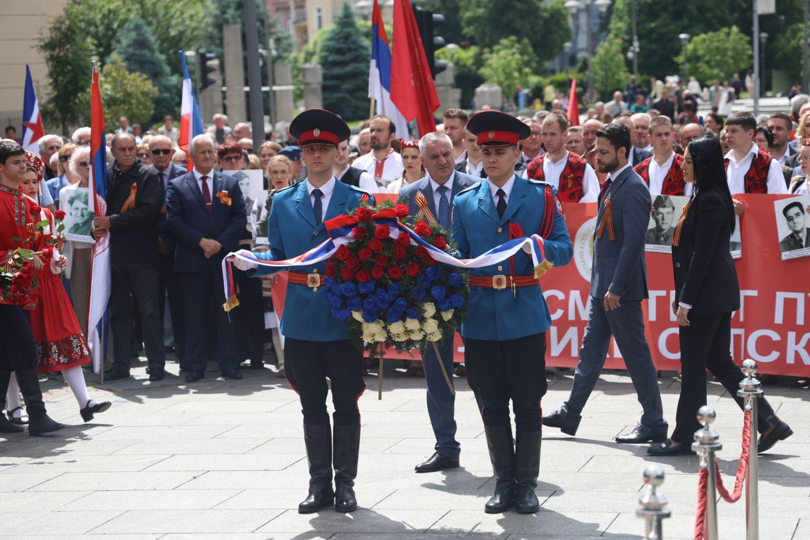 Na Spomenik žrtvama fašizma na banjalučkom Trgu palih boraca položeni su vijenci i cvijeće povodom obilježavanja 9. maja i istorijskog događaja od republičkog značaja „Dana pobjede nad fašizmom 1945. godine“.