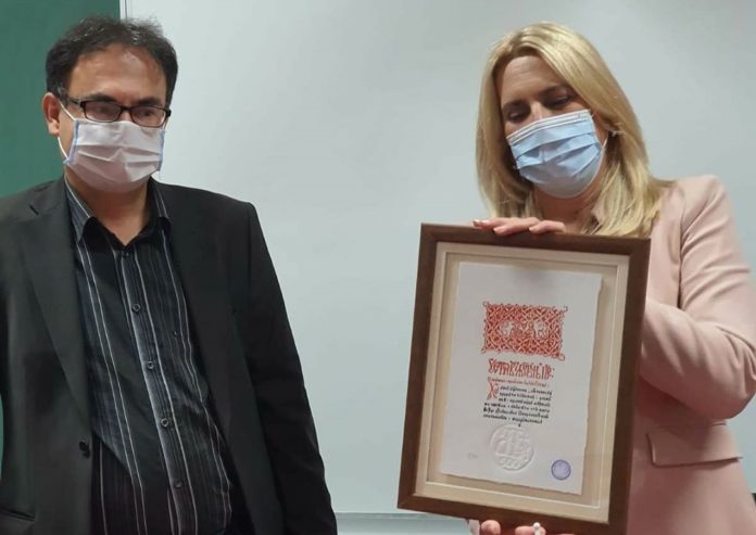 Predsjednica Republike Srpske Željka Cvijanović dobila je danas u Trebinju na poklon repliku naslovne strane knjige „Služabnik goraždanski“, štampane u Goraždu 1519. godine.