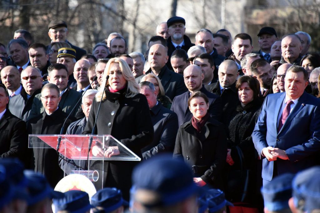 12:08 – Komandir Počasne jedinice MUP-a Srpske Vitomir Petričević predao je raport predsjednici Srpske Željki Cvijanović.