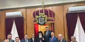 Trišić Babić i Dodik sa patrijarhom jerusalimskim Teofilom Trećim