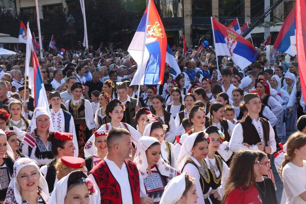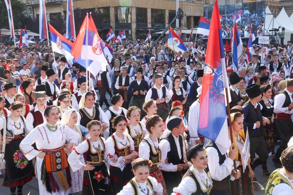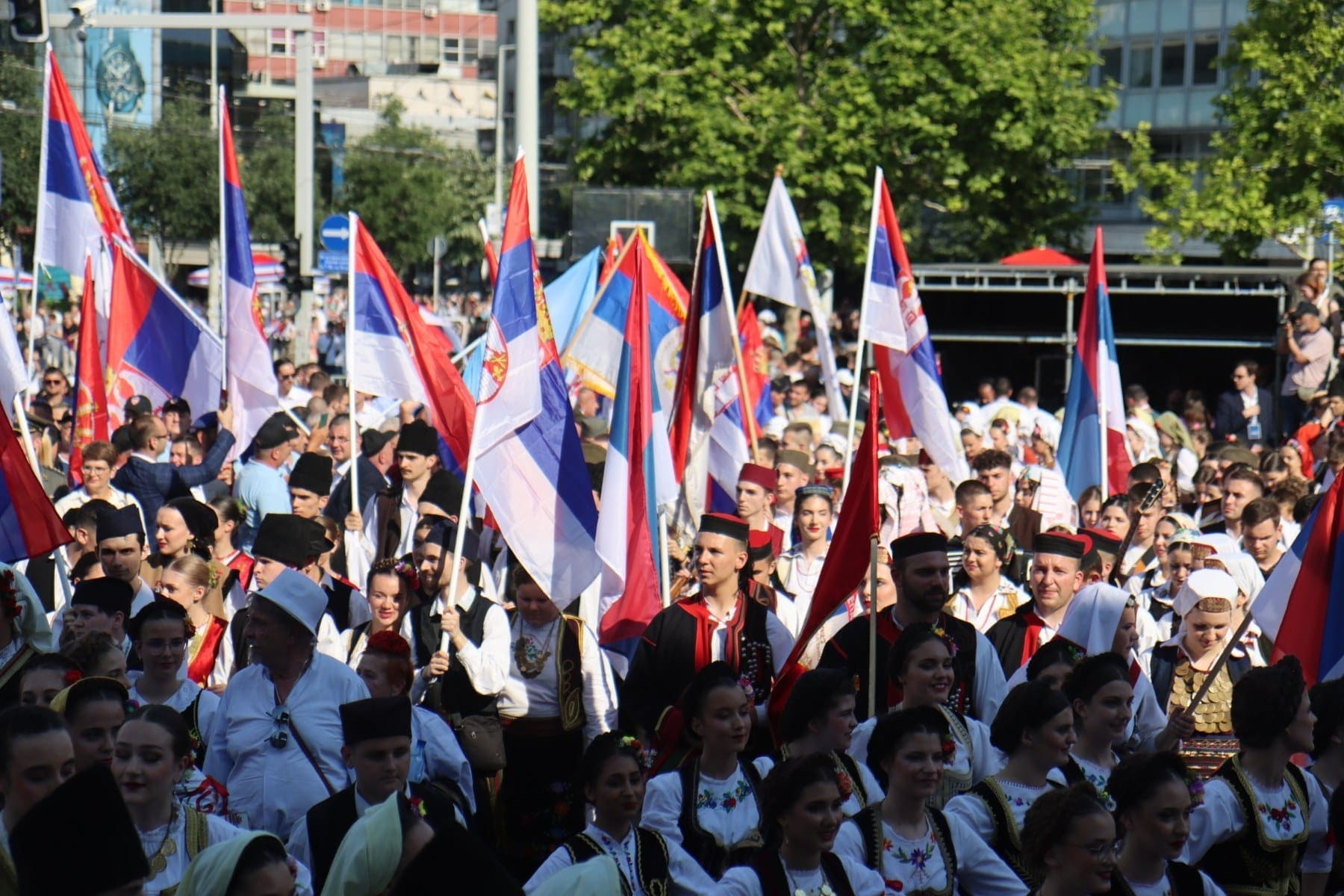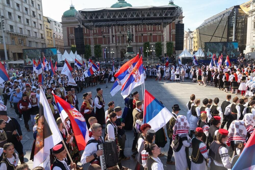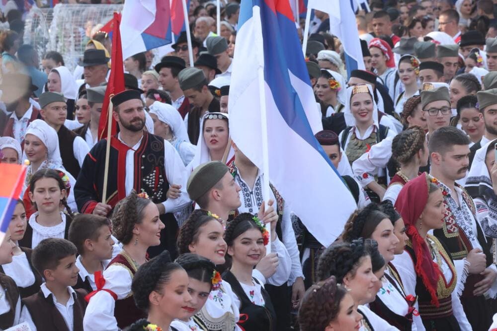 U okviru centralne manifestacije na Trgu Republike, gdje je pripremljen kulturno-umjetnički program, 2.500 folkloraša iz Srbije i Republike Srpske odigralo je srpsko kolo Moravac.
