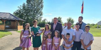 Srpski član Predsjedništva BiH Milorad Dodik danas je kumovao na krštenju devetoro djece iz višečlane porodice Srboljuba Đurića u Krušiku kod Gradiške.