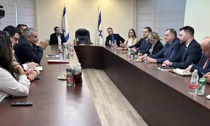 Vršilac dužnosti predsjednika Republike Srpske Ana Trišić Babić i predsjednik SNSD-a Milorad Dodik sastali su se danas u Izraelu sa poslanikom Kneseta iz stranke Nova nada Zeevom Elkinom.