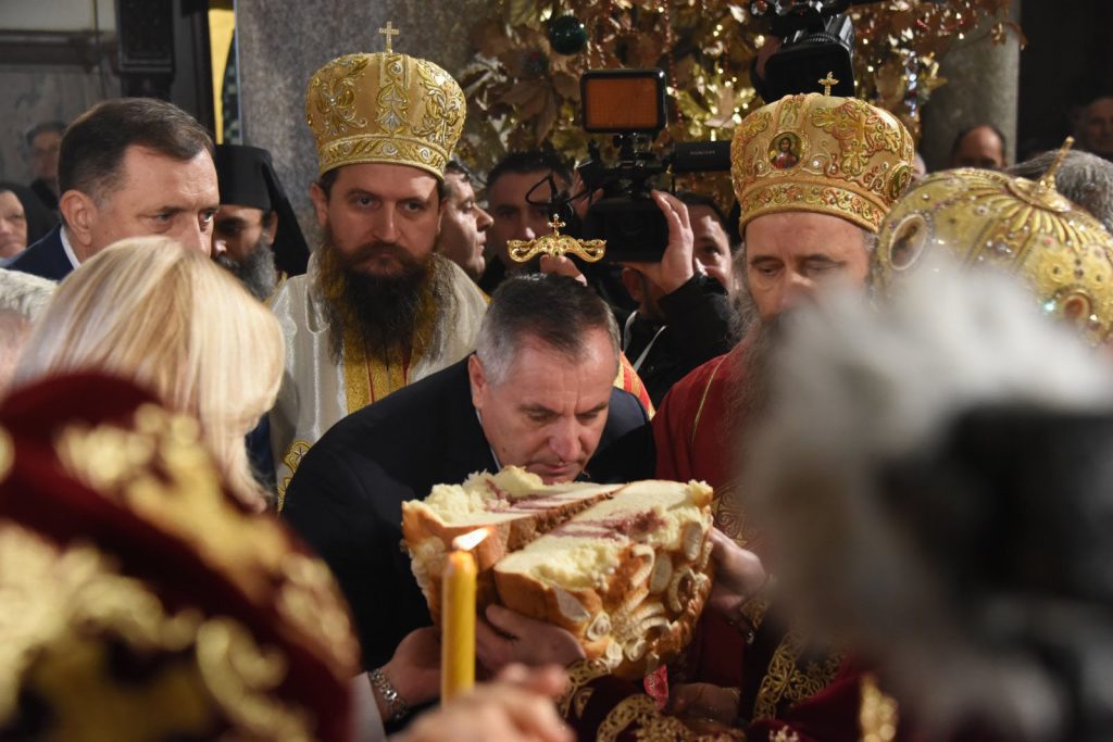 Slavski kolač su prelomili patrijarh Irinej i srpski član Predsjedništva BiH Milorad Dodik, predsjednik Srpske Željka Cvijanović, premijer Radovan Višković i predsjednik Narodne skupštine Nedeljko Čubrilović.