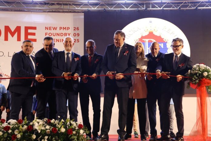 Predsjednik Republike Srpske Milorad Dodik i vlasnik i direktor italijanske kompanije PMP Luiđino Poco svečano su otvorili PMP livnicu u poslovnoj zoni Aleksandrovac u Laktašima, najsavremeniju u Evropi.