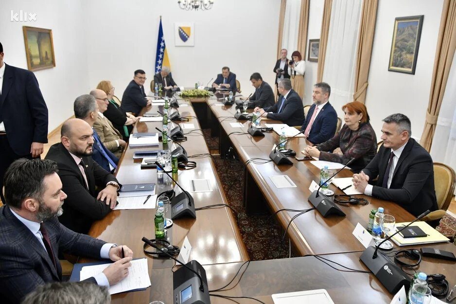 Za stolom su i bili ministar sigurnosti BiH Fahrudin Radončić, ministar spoljne trgovine i ekonomskih odnosa Staša Košarac i ministar spoljnih poslova Bisera Turković.