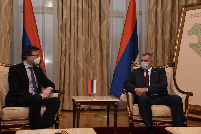 Višković je danas upoznao direktora za Evropu iz Ministarstva spoljnih poslova Velike Britanije Džajlsa Portmana sa stavovima Republike Srpske u vezi sa trenutnom političkom situacijom, te istakao da je jedini put za rješavanje svih otvorenih pitanja u BiH dijalog i dogovor, saopšteno je iz Biroa Vlade za odnose s javnošću.