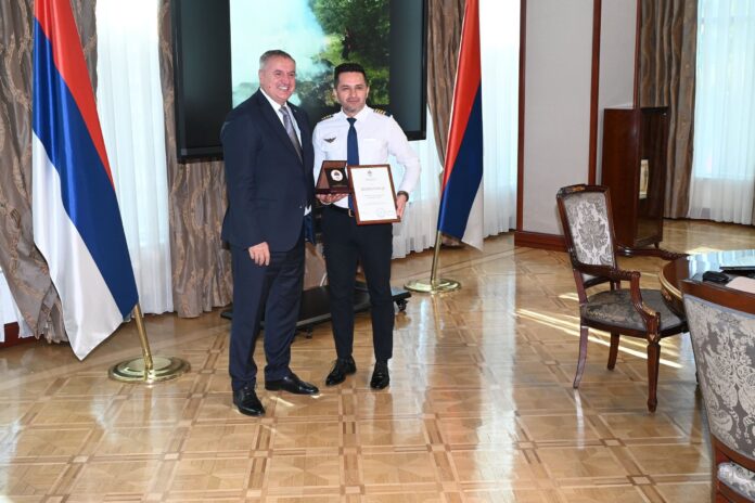 Premijer Republike Srpske Radovan Višković uručio je danas u Banjaluci ambleme Republike Srpske i zavalnice predstavnicima Helikopterskog servisa Srpske i helikopterskih jedinica Ministarstva unutrašnjih poslova Srbije zbog uloženih nadljudskih napora u gašenju požara u Nacionalnom parku „Sutjeska“ i u Srpskoj štiteći živote i imovinu građana.