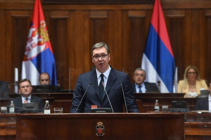 Predsjednik Srbije Aleksandar Vučić rekao je danas u Skupštini Srbije da Srbi ne treba da traže pravdu i smislen odgovor na pitanje kako je Albancima na Kosovu i Metohiji dato pravo na samoopredjeljenje, a Srbi u Republici Srpskoj, međunarodnim ugovorom definisanoj teritoriji, nemaju to pravo.