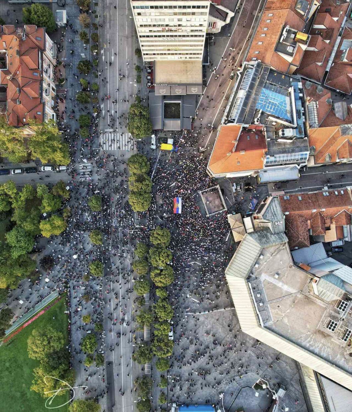 Njegova procjena je daleko od istine. Na snimcima koje su napravili dronovi, vidi se da se oko 3.500 ljudi okupilo na Trgu Krajine u Banjaluci.
